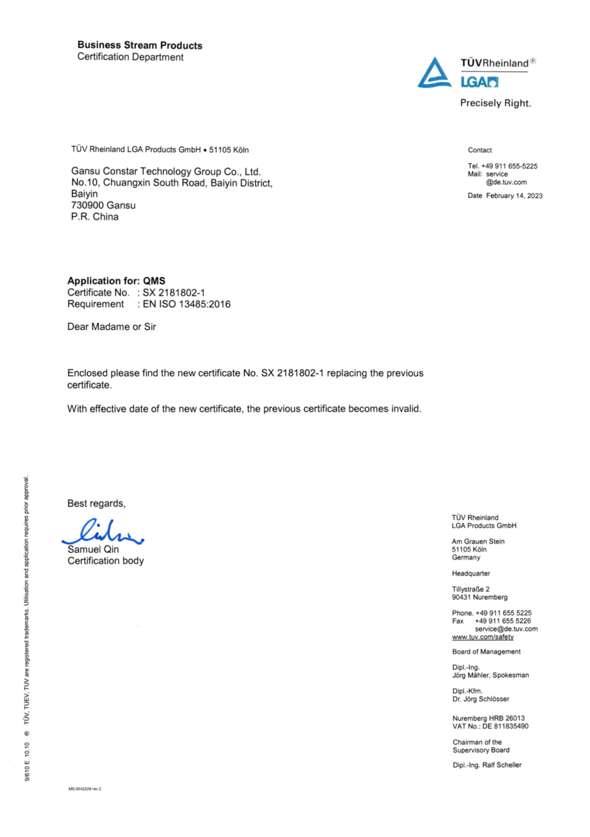 6. Issued By:TÚV Rheinland LGA Products GmbH. 51105 Köln